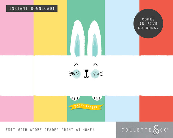 Cutest little Easter bunny gift wrap you’ve ever seen! I get so much joy every time I wrap a little Easter treat for a loved one when using this Easter gift wrap printable. They make your Easter gifts look beyond adorable! Also available in multiple colours to make your gifts look fun and colourful! OR use a specific colour per child if you’re doing an Easter hunt for more than one child. I love the cute and quirky design of the face being on the gift tag and ears on the gift wrap – it creates a really original Easter gift!