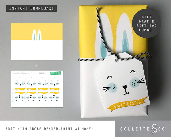 Easter Printable Bunny Wrapping Paper & Gift Tag