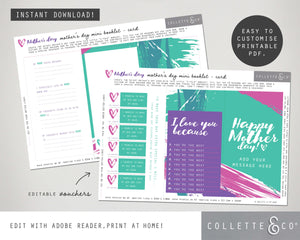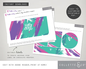 Make your mother feel super special this mother’s day with these cute original mother’s day printables. Create a keepsake mother’s day card by filling in the blank spaces with your special messages and favourite memories. Shower your mom with love and her favourite things such as wine and chocolate and personalise them using editable labels to make them extra special. This bundle has everything you could possibly need to make your mom feel loved by giving her a truly unique thoughtful mother’s day gift!