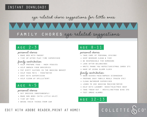 - 2 chore charts designed for different age ranges