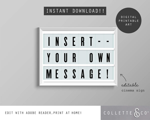 If you’re looking for unique wall art ideas you’ll love this editable cinema sign! It is so versatile, you can create awesome contemporary wall art for your home and re-use again for those all important big day moments like your little one’s first day at school! We have Saturday movie and pizza nights, so we make a new “now showing” sign for our living room each week with what we’re watching to get the home cinema vibes!